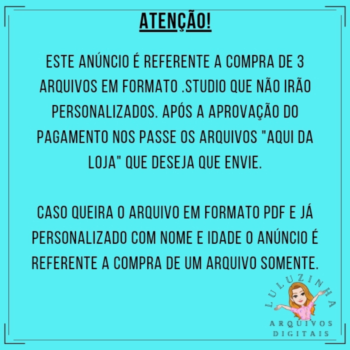 OS ARQUIVOS SERÃO ENVIADOS EM FORMATO STUDIO.