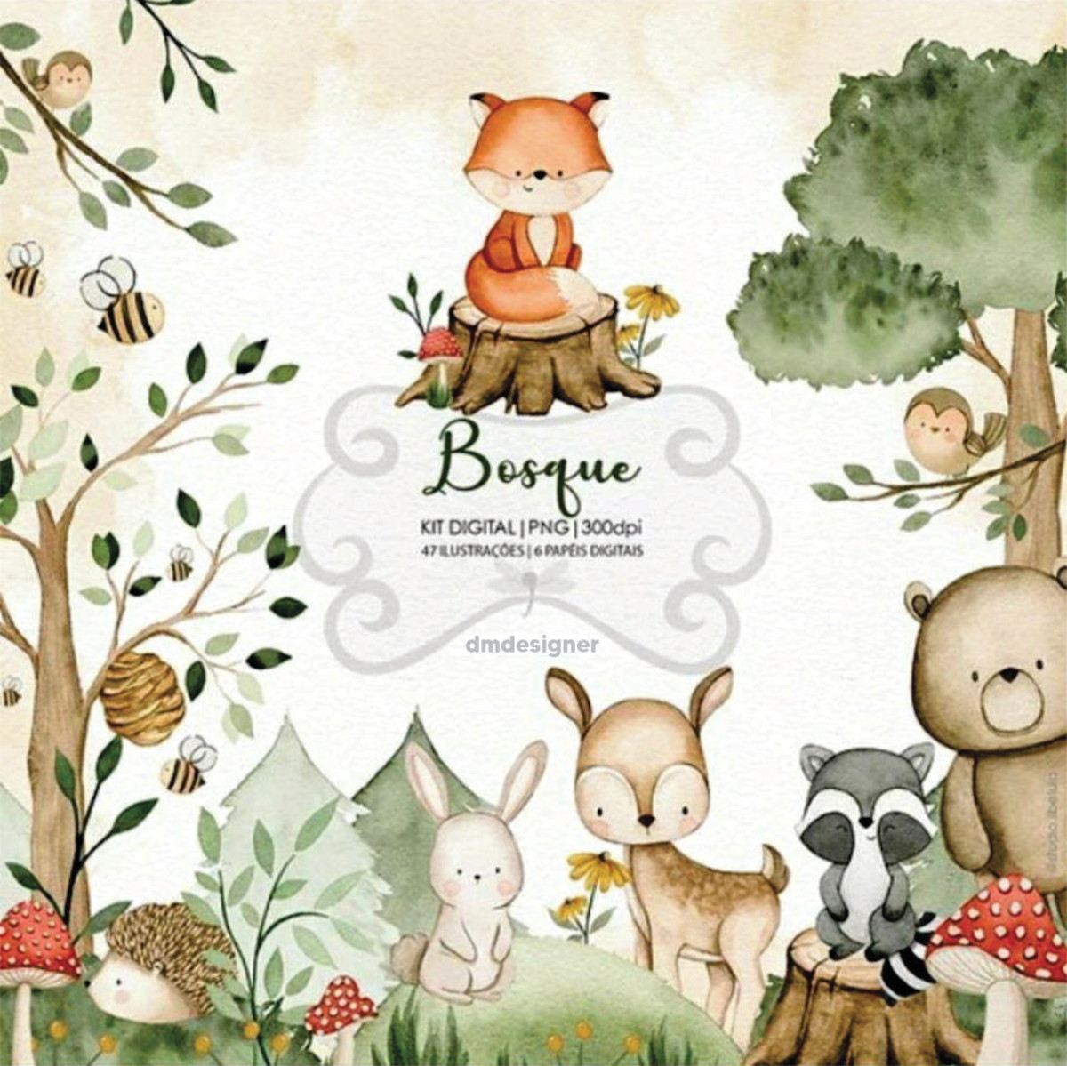 Animais, floresta, bosque, baby, cute, raposa, esquilo, guaxinim, urso, coelho, porco espinho, raposinha, ursinho, coelhinho, cartola, chapéu, flores, folhas, cogumelo, tora, madeira, nozCódigo do produto: 18710ECAdicionado em: 24/01/2022